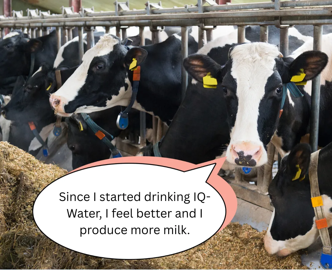 IQ-Water reduces harmful bacteria and stress factors in drinking water, leading to stronger immune systems and better digestion.